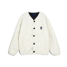 YALE EMBROIDERY DAN COLLARLESS QUILTING FLEECE JACKET IVORY [✨ NO.1 제품 ]